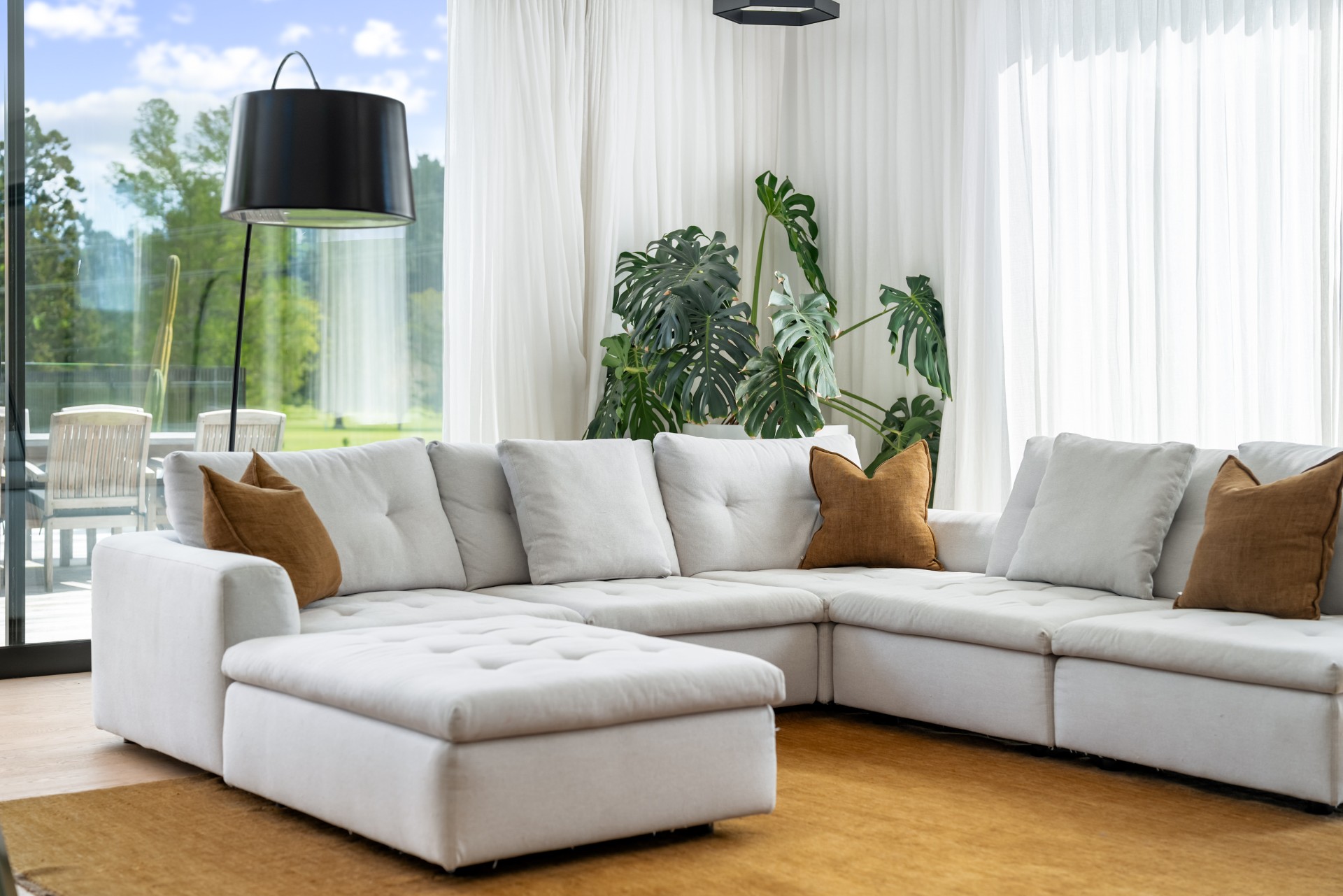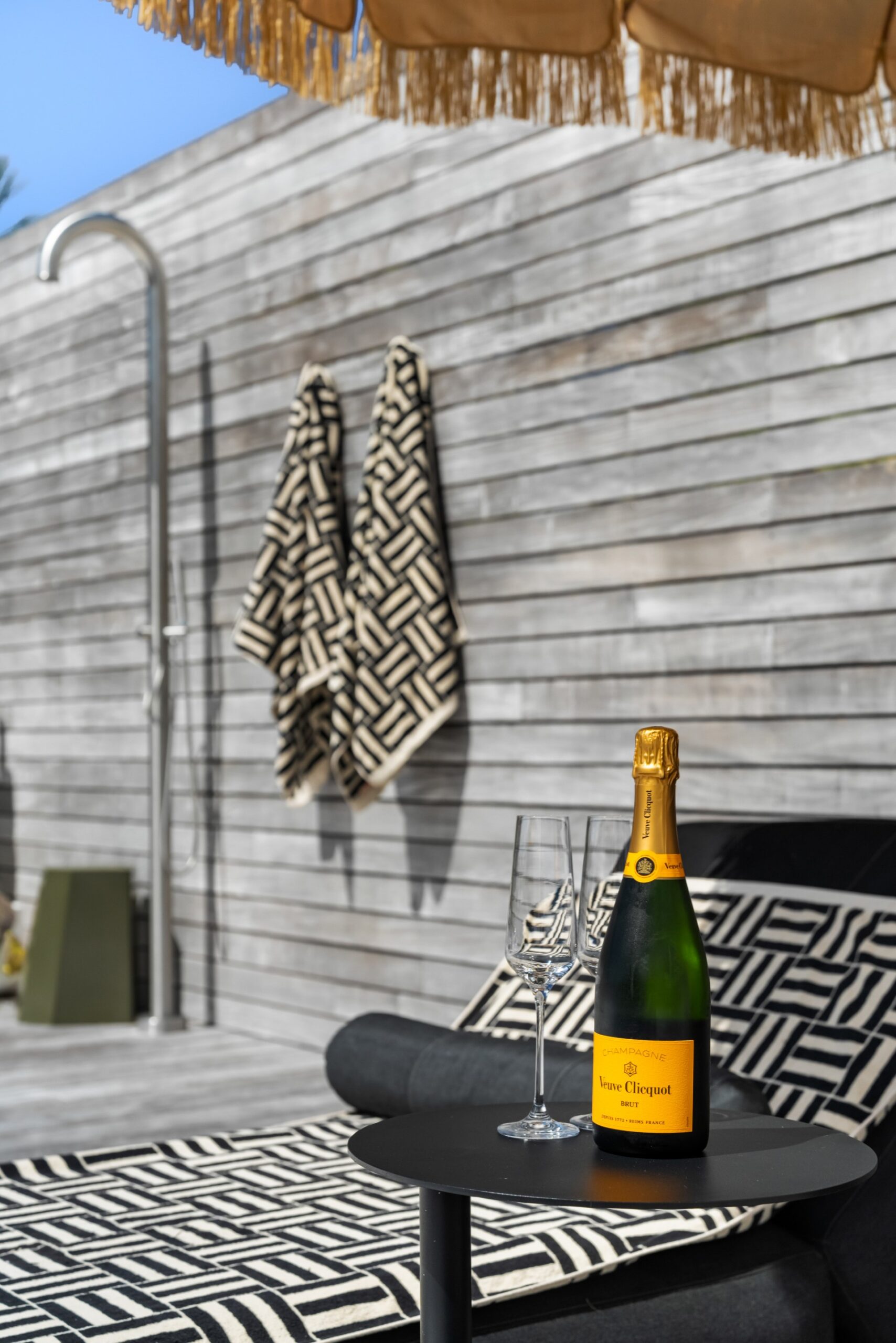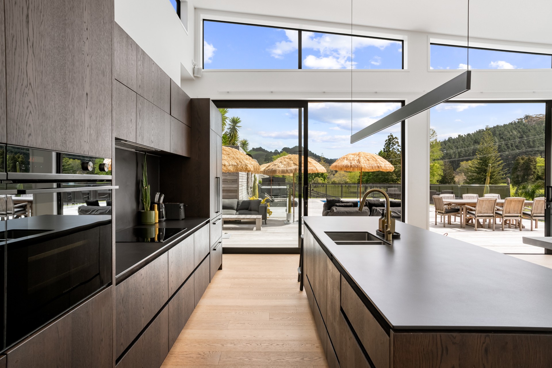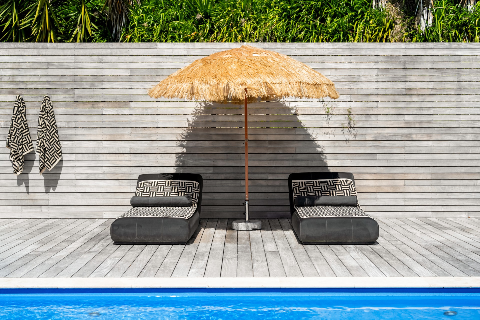 Along the main living area are large ranch sliders that take you out to the most stunning outdoor area. With a swimming pool, hot tub, outdoor shower and grass umbrellas you will feel like you are on a tropical island! With plenty of sun loungers, it is a fantastic spot to enjoy sunbathing, reading a book or just watching the kids in the pool. There is also a large outdoor table & chairs and a BBQ a great spot to enjoy your evening meals.