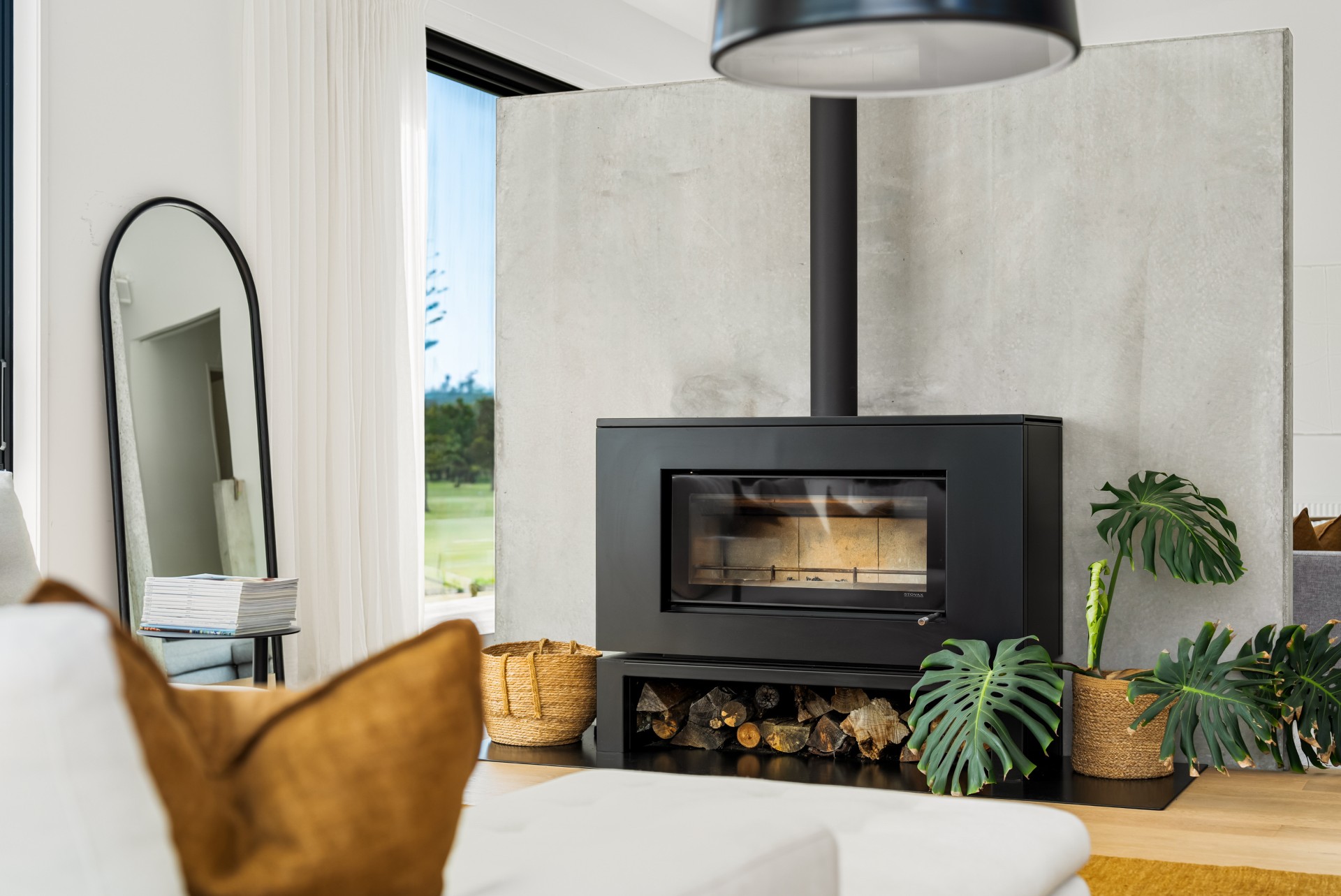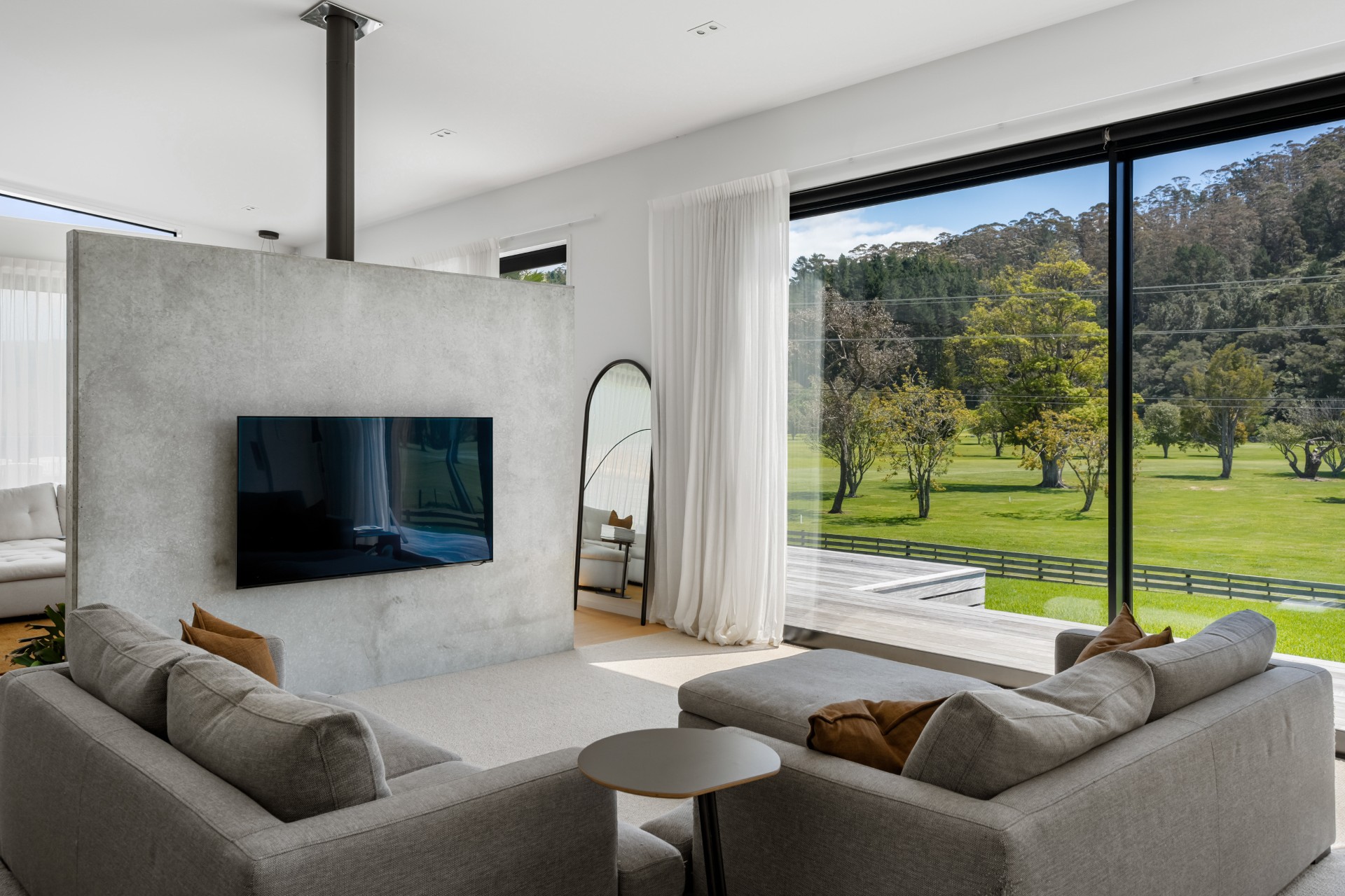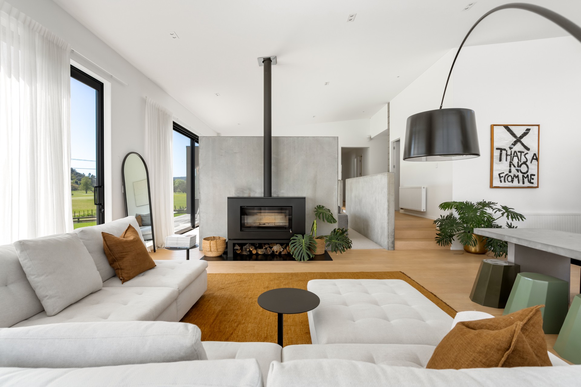 The modern kitchen has everything you need for your stay, including a dishwasher and drinks fridge. There are two lounges back-to-back, on one side there are couches and a Smart TV for chilling out and on the other comfortable couches and a wood burner fireplace to keep you warm and cosy. With aircon and central heating, you are sure to be comfortable at any time of the year.