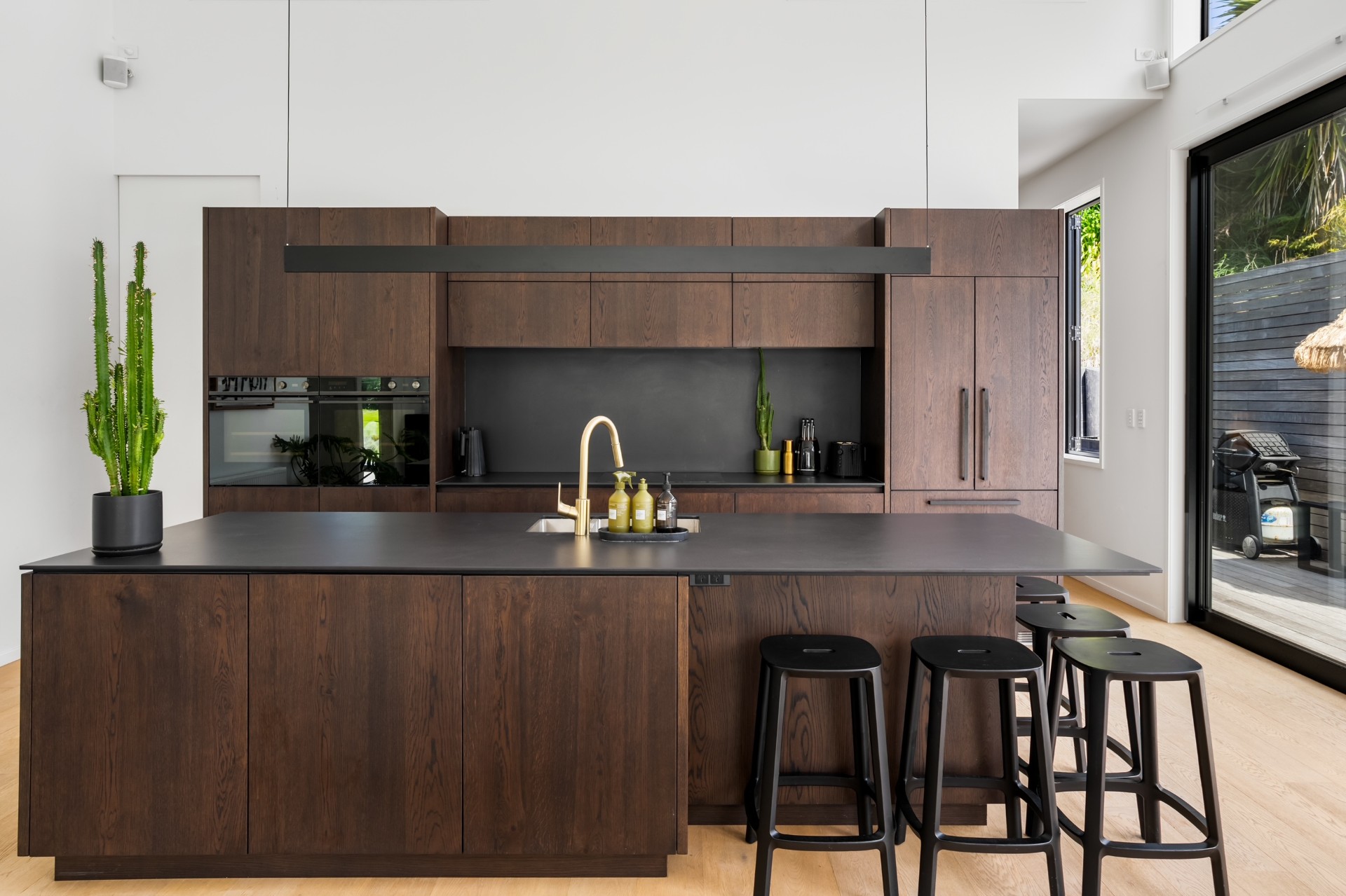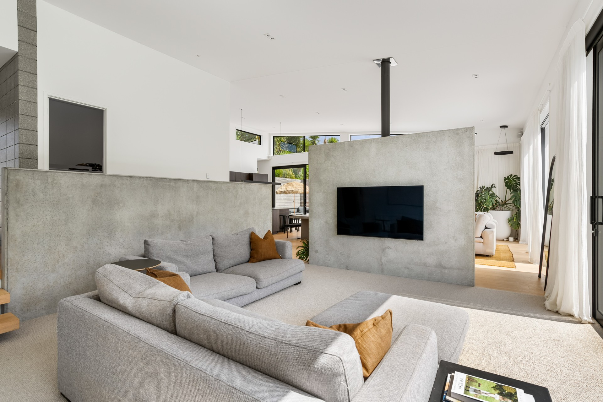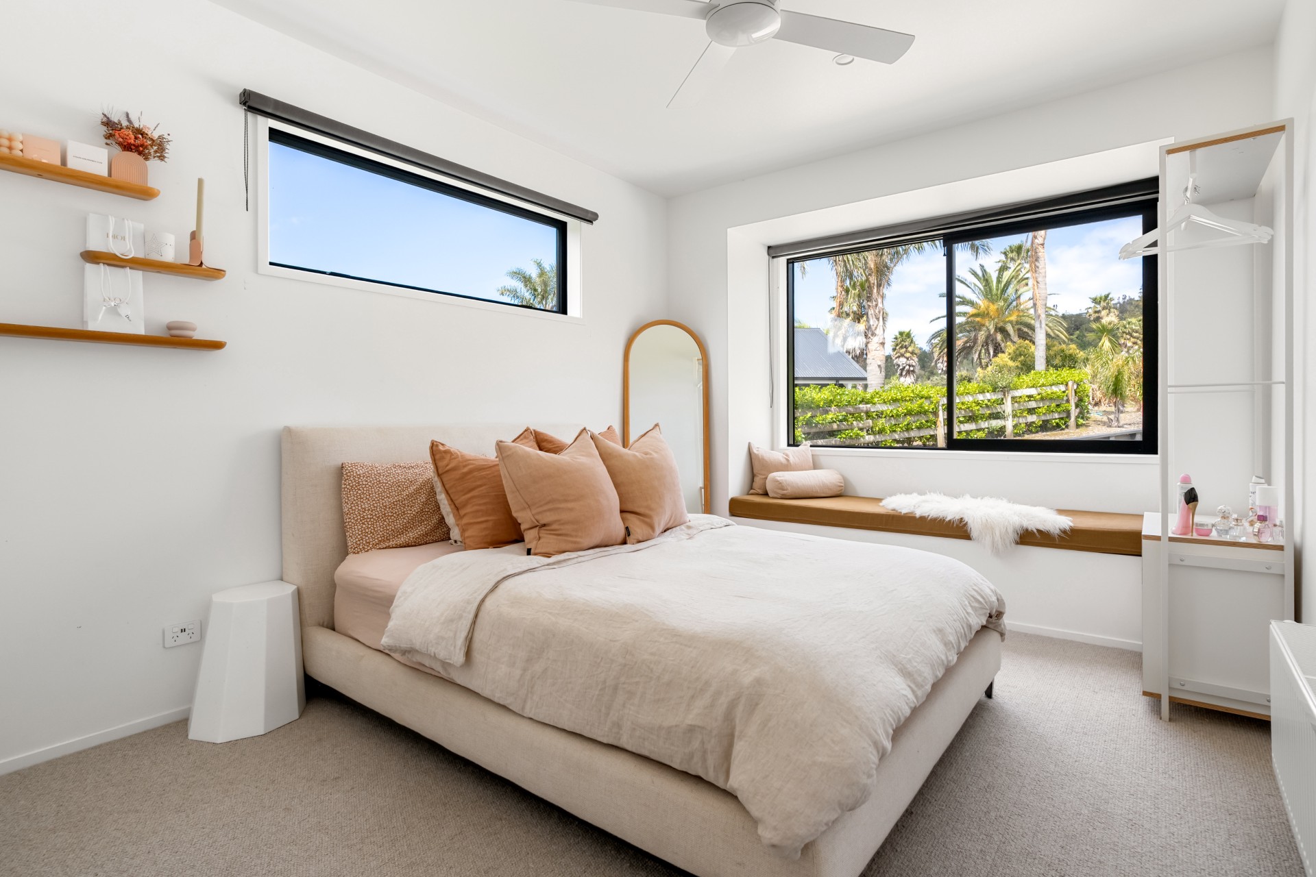 The modern kitchen has everything you need for your stay, including a dishwasher and drinks fridge. There are two lounges back-to-back, on one side there are couches and a Smart TV for chilling out and on the other comfortable couches and a wood burner fireplace to keep you warm and cosy. With aircon and central heating, you are sure to be comfortable at any time of the year.