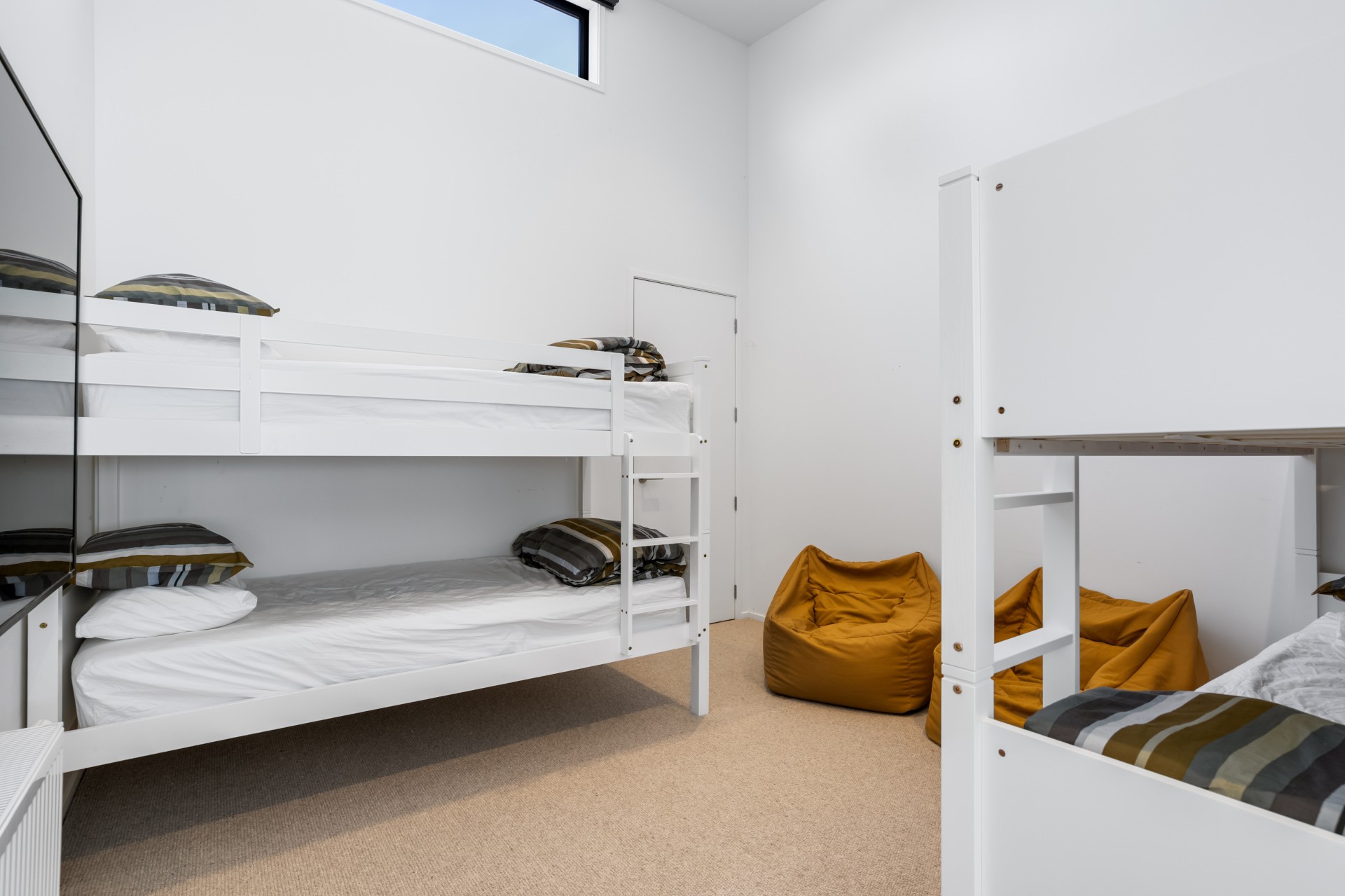 With four bedrooms, two bathrooms and three toilets, the home has plenty of space for the whole family. The master bedroom has a Super King bed, bedrooms two & three have Queen beds, and bedroom four has two sets of King Single bunks comfortably sleeping 10 people.