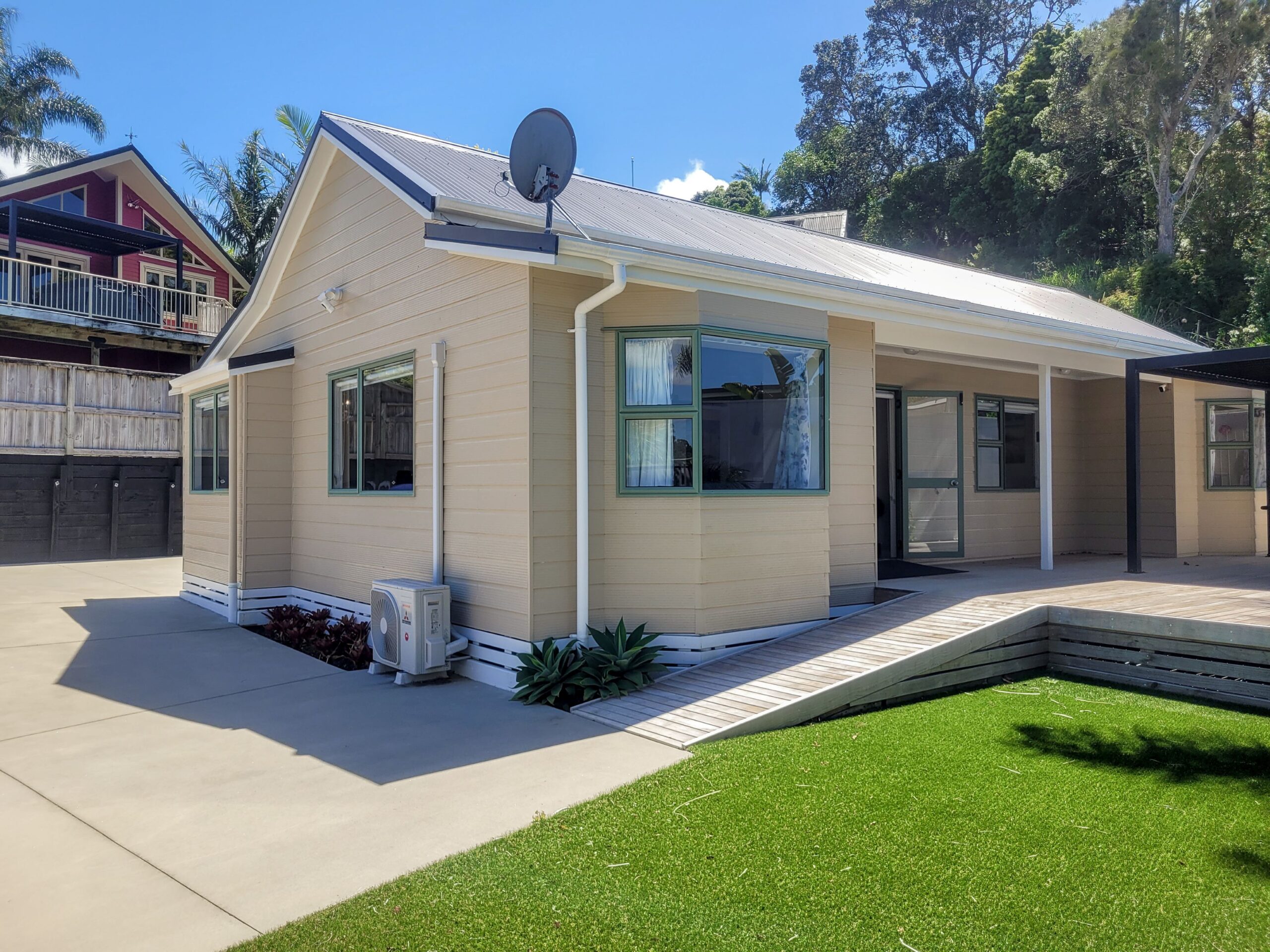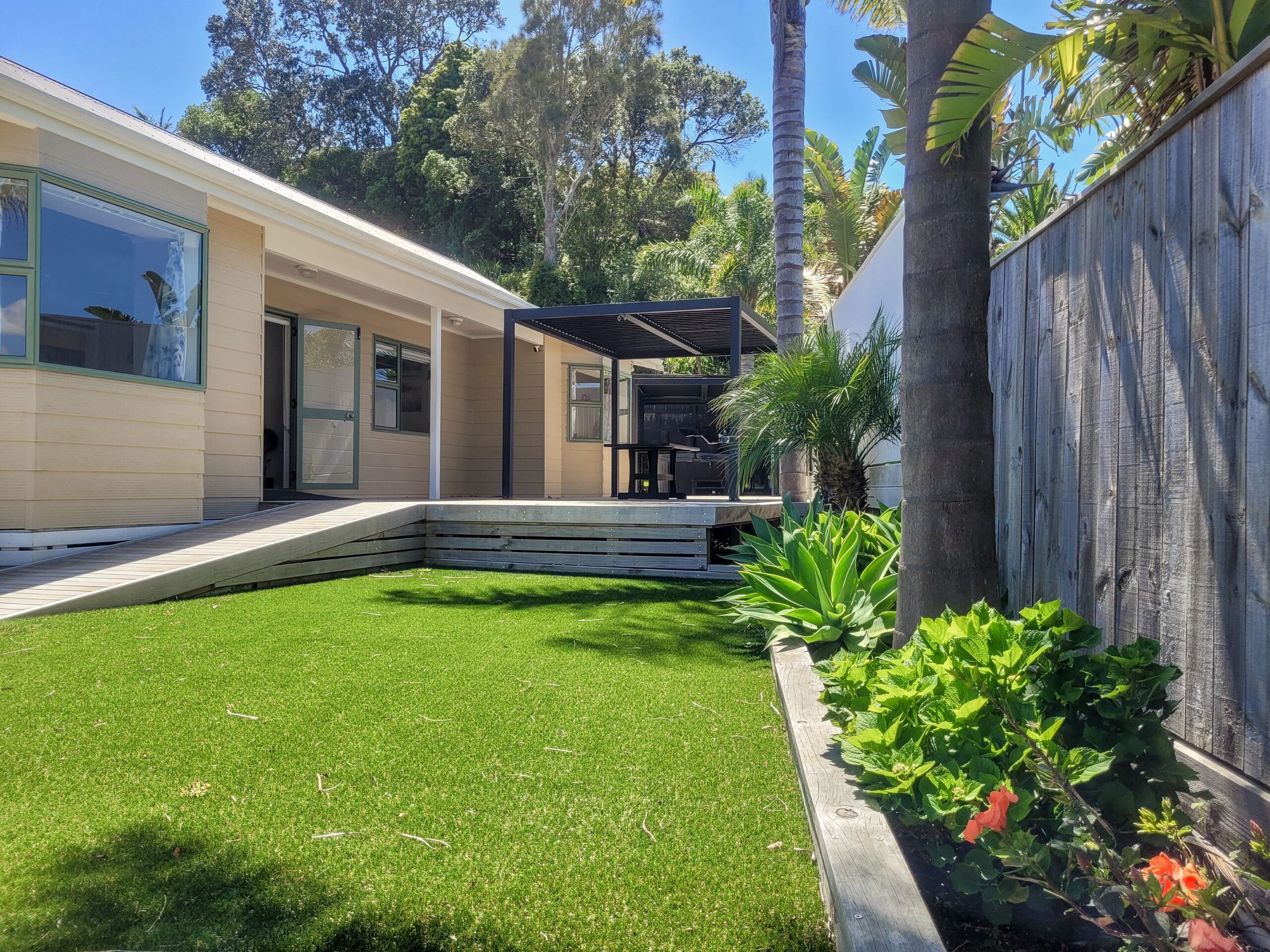 Step outside to the wheelchair-accessible deck, where there’s space for everyone. Enjoy meals or afternoon drinks under the pergola, soak in the spa, or simply unwind in the bean chairs on the lawn. The private, laid-back vibe is hard to beat — and being just moments from Brophy’s Beach is a major bonus. With plenty of room for car and boat parking, you’re all set to enjoy everything Whitianga has to offer.