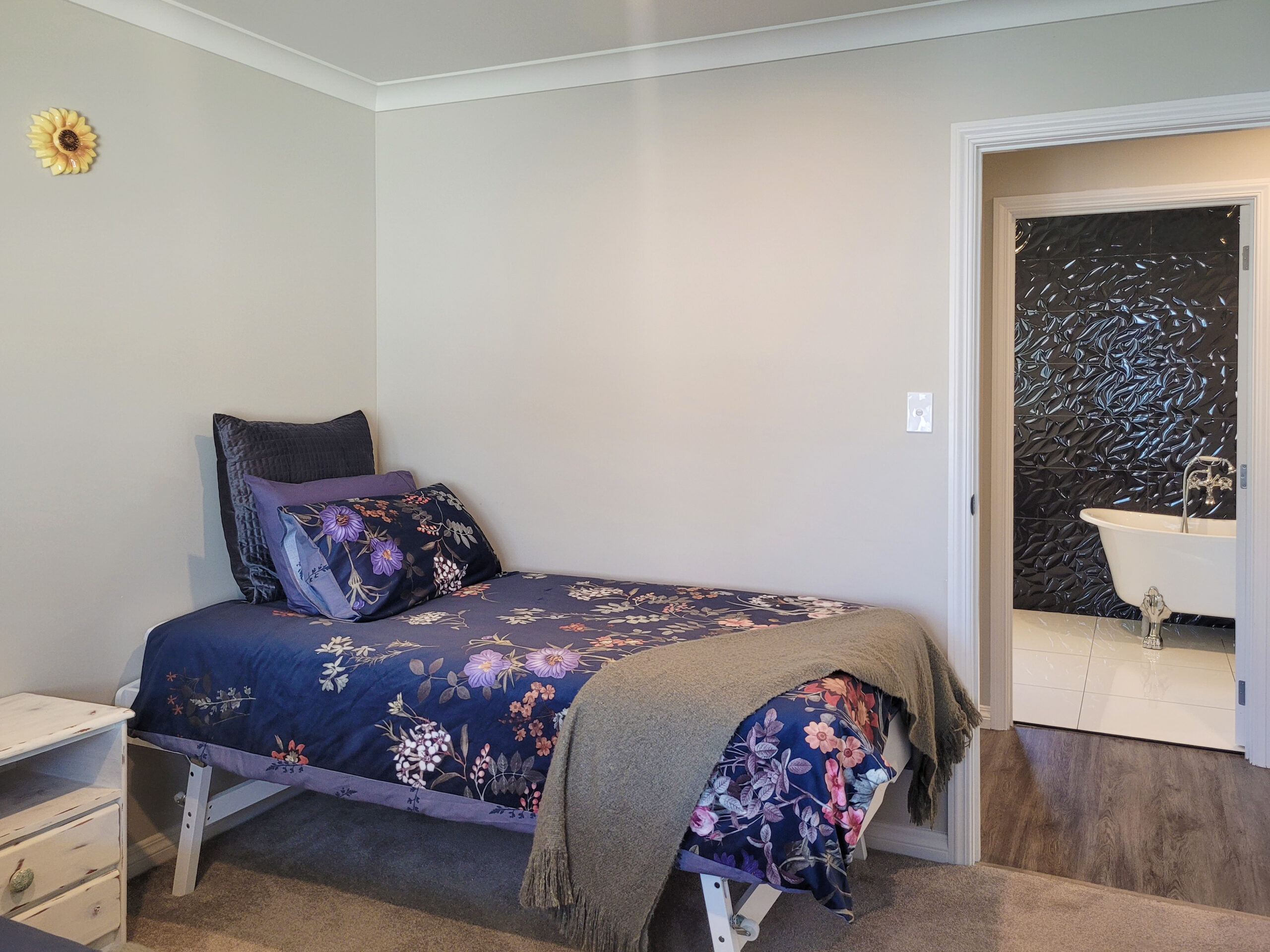 The main bedroom features a queen bed and a stunning en-suite. Bedroom two also has a queen bed, and bedroom three includes two single beds — ideal for families or groups. A purpose-built wheelchair-accessible bathroom ensures comfort for every guest.