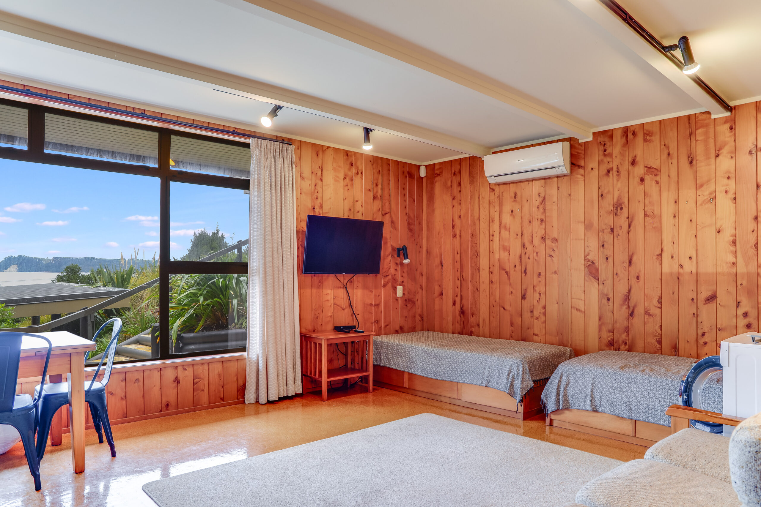 Located just 6 km from Whitianga and 40m walk to the black and golden sandy beach of Simpsons Beach, this spacious home set over three levels can comfortably sleep up to 12 guests, making it an ideal retreat for large families or groups of friends.